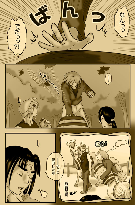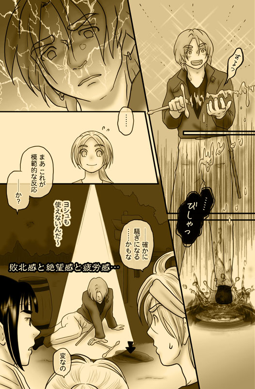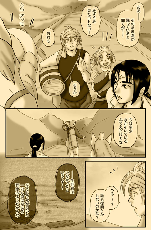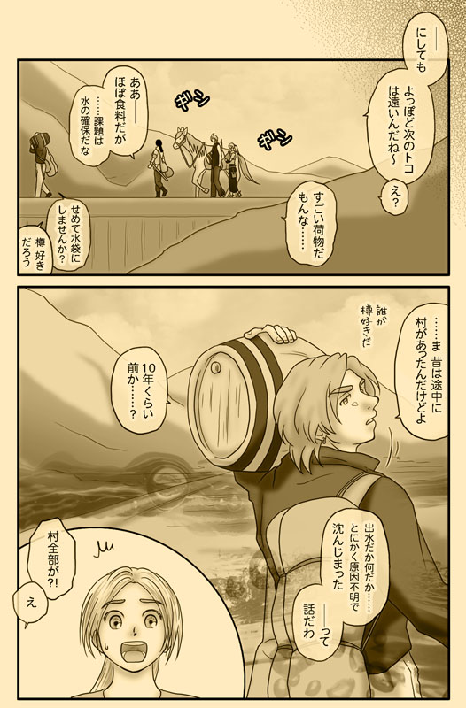 災害により、現在も大変な状況にある方々がたくさんいらっしゃるので、筋の変更や順番の入れ替え、更新の据え置きなどを検討したのですが、今回の会話並びに後出の水害・水没を含む内容は、終盤まで響く肝のシーンということと、元絵をだいぶ進めてしまっていることから、Twitterで多くの方から頂いたアンケートの投票結果やご意見を参考に、注意喚起文を入れて更新することにしました。(悪あがき程度に文の微調整や表情の変更はしましたが。) こんなふざけた漫画を描いてはいますが、被害に遭われた方々が一日でも早く日常に戻れることを願っています。